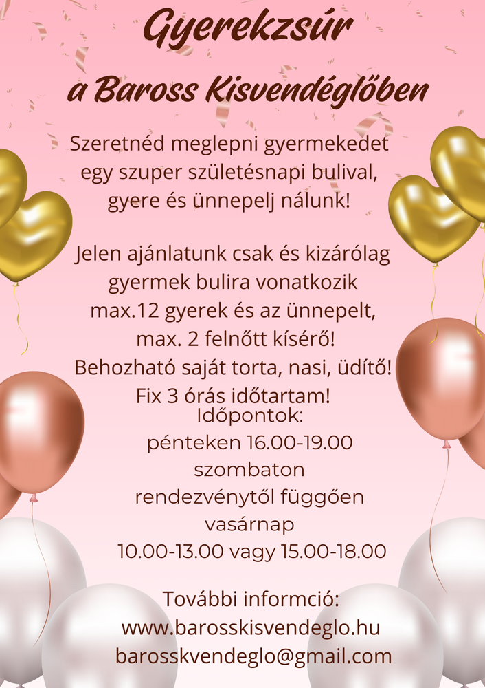 További információval kapcsolatban telefonon vagy a barosskvendeglo@gmail.com email címen lehet.
